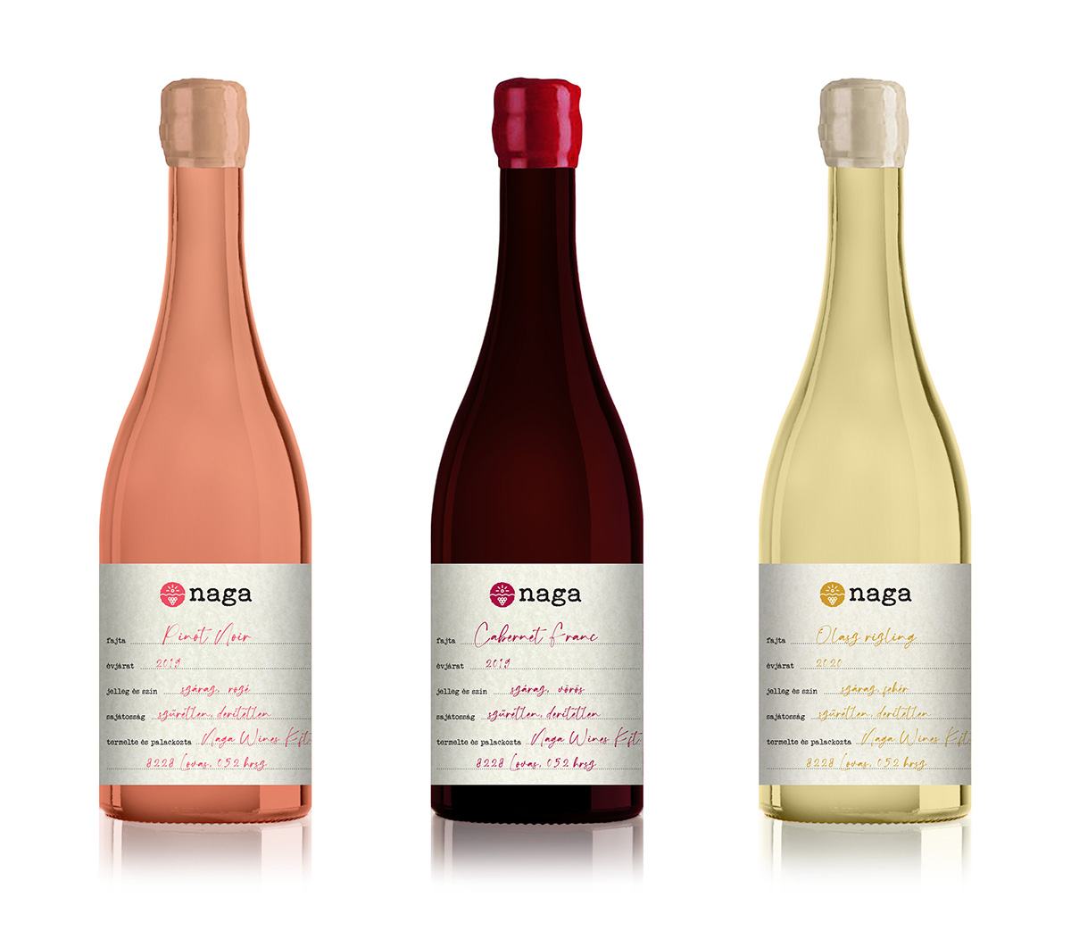 Naga borászat logó és címkék