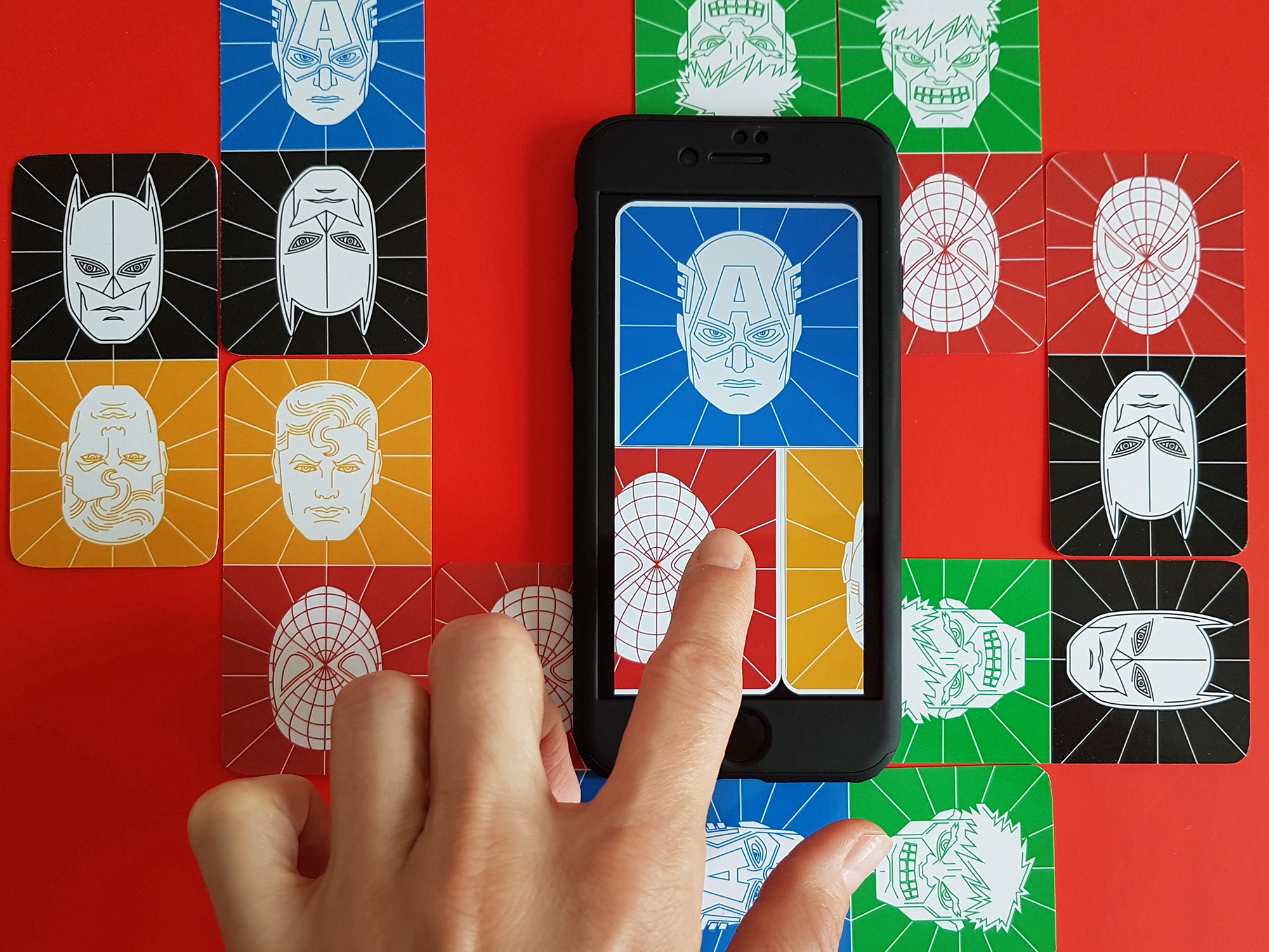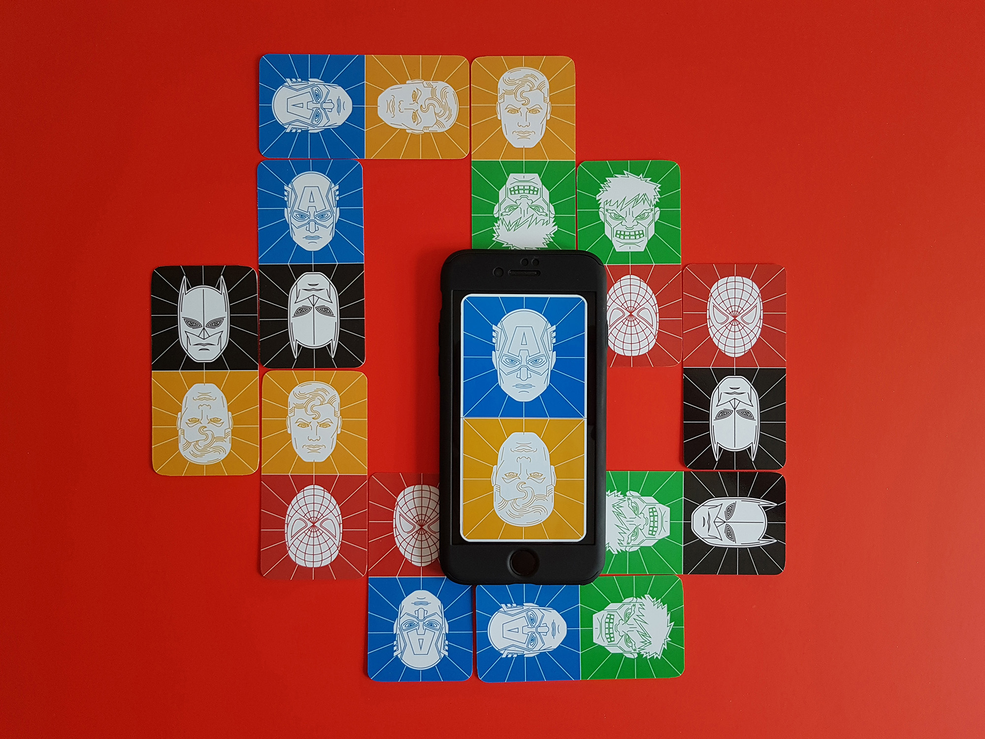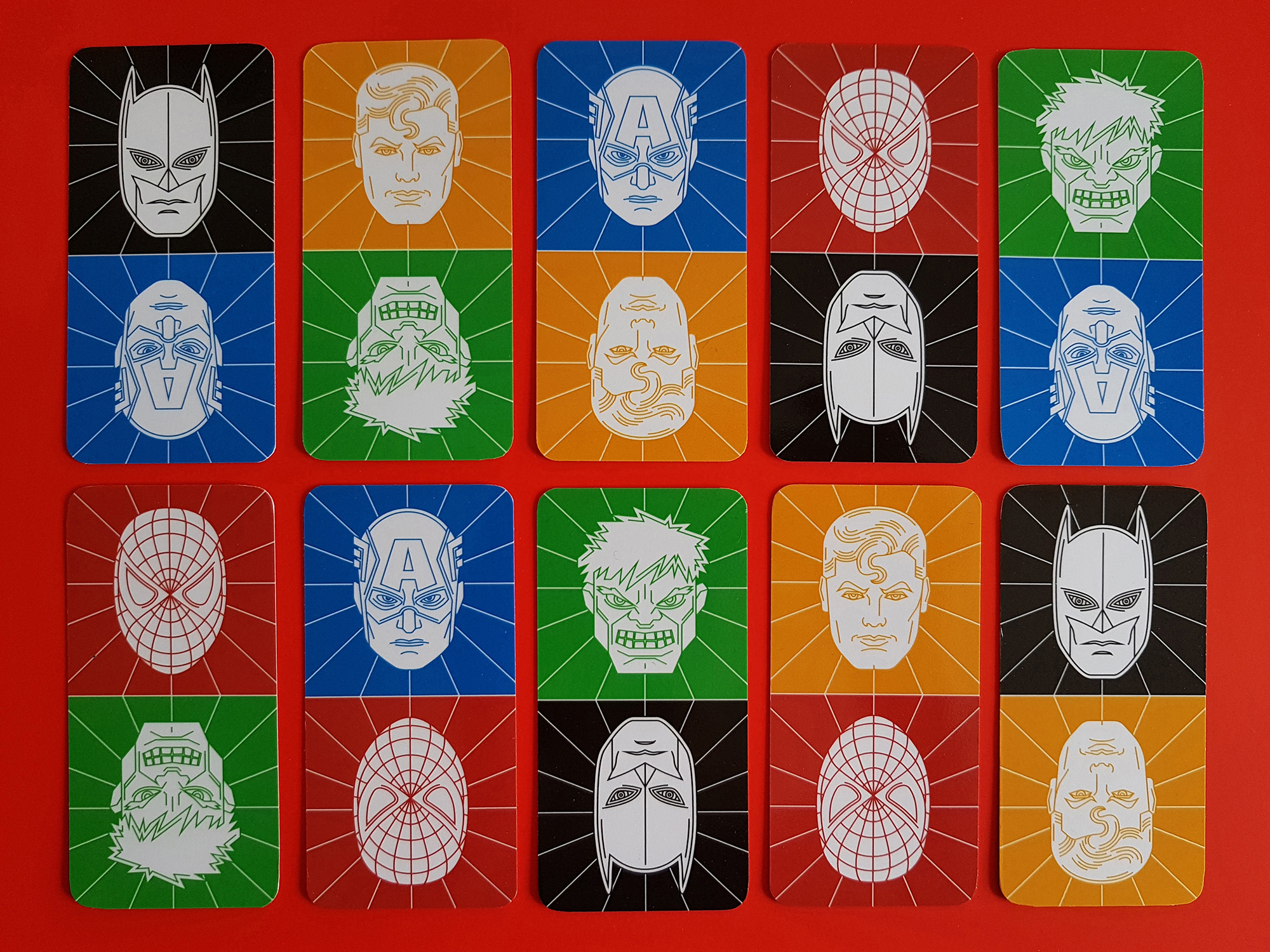 Kártya illusztrációk a Superhero Domino bűvész apphoz